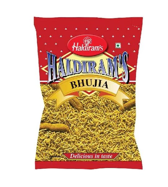 Haldiram’s Bhujia is a popular Haldiram’s snack made with savory bean flour (tepary beans/moth bean) and chickpea flours. It is then spiced with salt, chili powder, black pepper powder, ginger powder, clove powder, mace powder, nutmeg powder and cardamom powder.