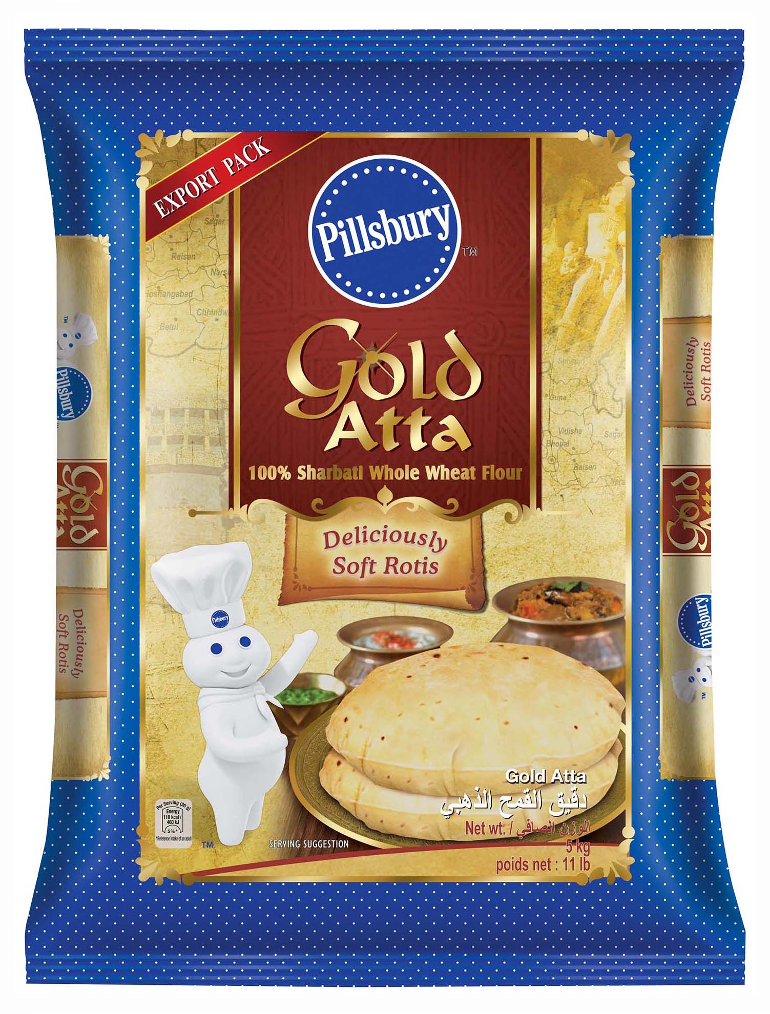 Pillsbury Gold Atta is a great source of whole wheat grain atta with fibre. It’s also packed with natural ingredients for overall health and vitality, plus iron.