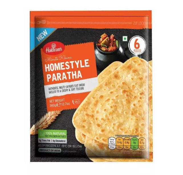 Our Frozen Homestyle Paratha is an authentic, multi-layered flat bread that’s grilled to create a crispy yet soft texture. To prepare, simply remove the parathas from the bag and place them on a preheated pan or tawa. Then gently apply even pressure as you move it around on the pan for about two minutes until both surfaces become golden brown. Once thoroughly heated, remove from the pan and serve hot for maximum flavor.