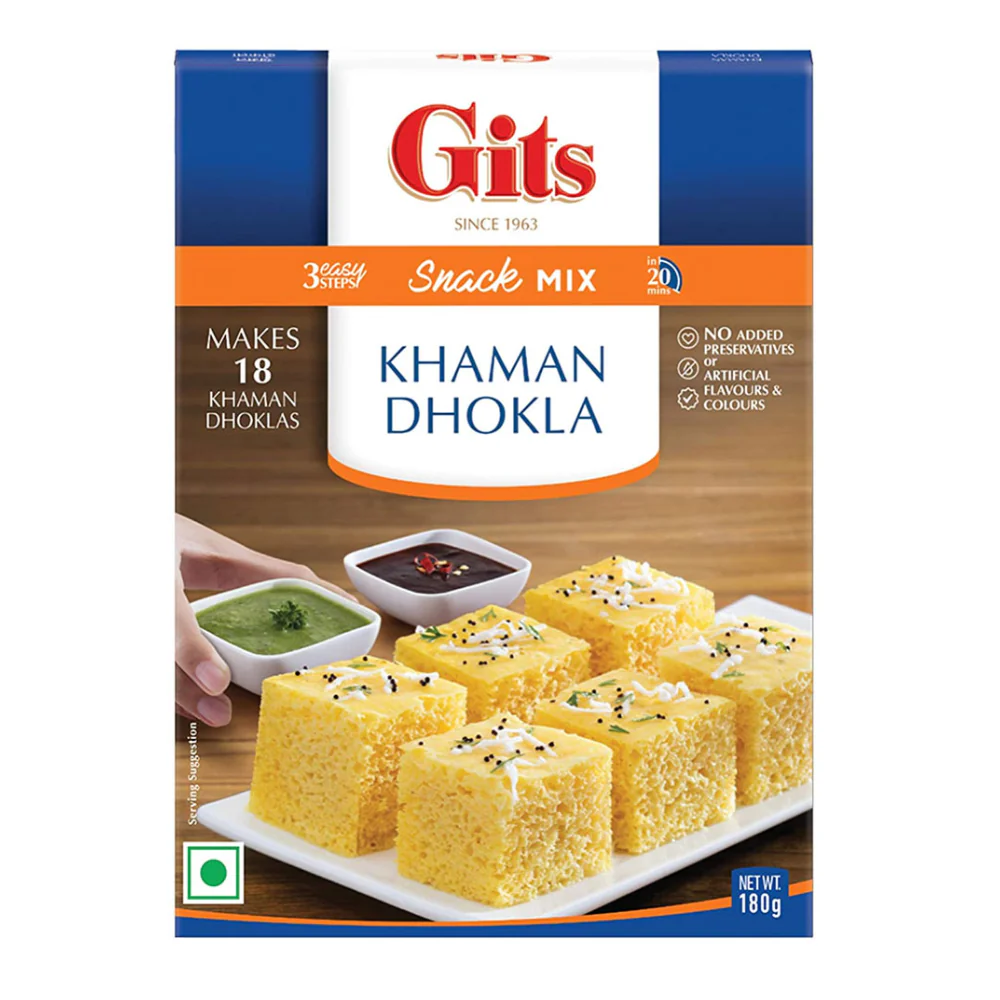 Gits Mix Khaman Dhokla is a traditional snack made from fermented chickpea flour. It is a typical Gujarati or Kutch dish, often eaten for breakfast or dinner. Khaman dhokla is high in protein and carbohydrates.